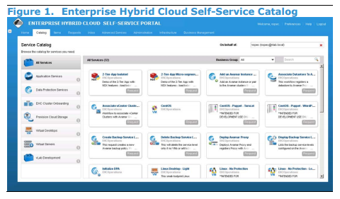 Enterprise Hybrid Cloud offers a self-service portal, accelerating delivery of traditional of services to get what they need, on-demand. They can match application workloads to the right cloud, on premises or off premises, selecting the infrastructure of choice that aligns with their cost, security, reliability and performance objectives.
